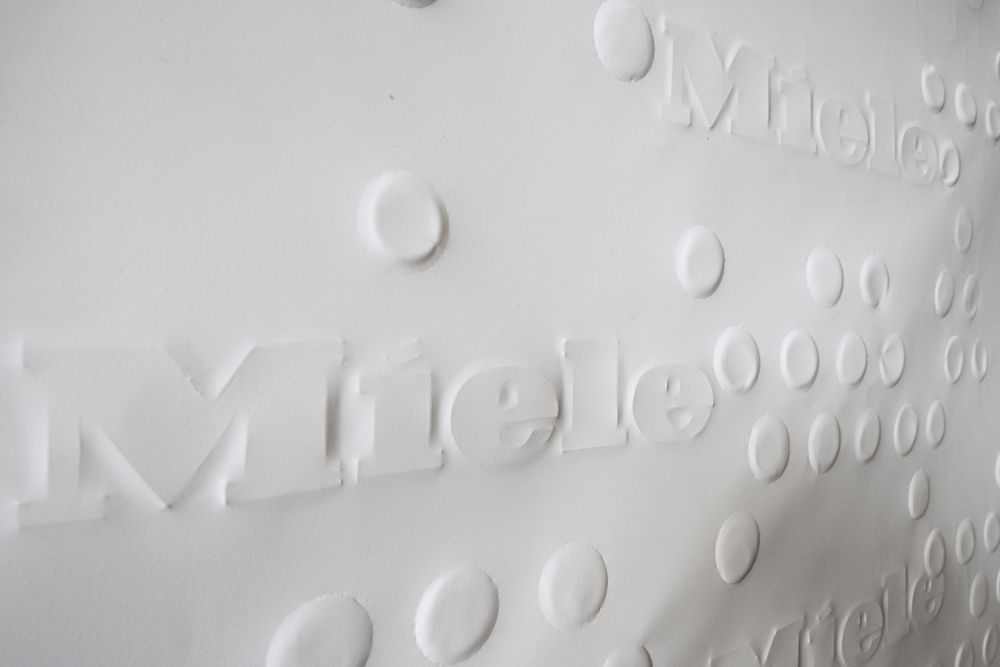 I primi frottage eseguiti imprimono sulla carta il logotipo della lavatrice Mìele (azienda tedesca di elettrodomestici fondata in Germania nel 1899), il pittogramma di un cristallo di neve dei frigoriferi dell’Agipgas (azienda dell’Eni fondata da Mattei nel 1953) e la trama a fori circolari dei termosifoni presenti nei corridoi e in quasi tutte le stanze della colonia divenendo icona di uno spazio. Tra logo e disegno si compone una duplice immagine: natura e industria si incontrano sulla stessa superficie, sono un binomio che si confonde e si scambia di significato attraverso lo stesso disegno geometrico di cui entrambe, originariamente, sono create.