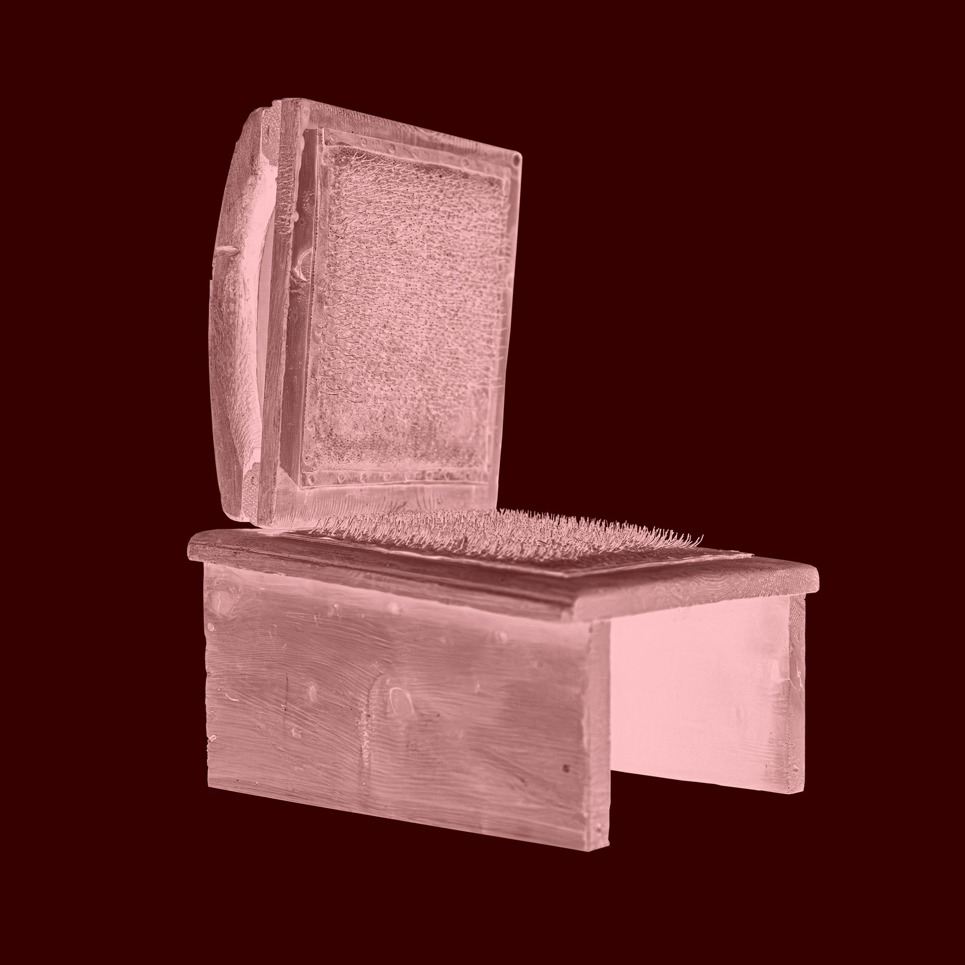 Cardatore, strumento per pettinare la lana, legno e pettine di ferro, casa di Nicoletta, Cancia, Borca di Cadore.