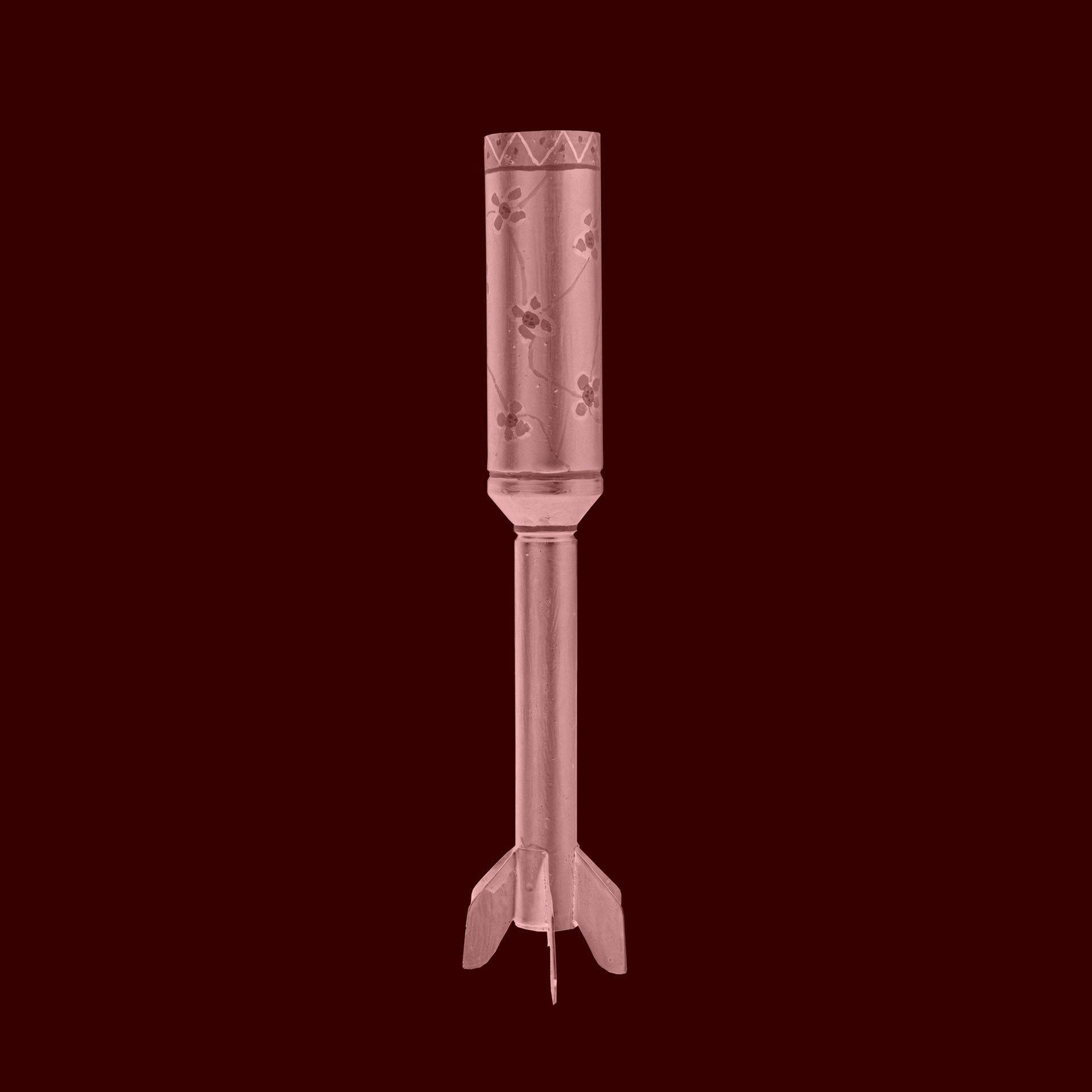 Colpo di cannone rinvenuto tra le montagne, poi dipinto dal padre di Nicoletta e utilizzato come vaso per fiori a stelo lungo, casa di Nicoletta, Cancia, Borca di Cadore.