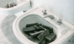 I suoni dell’opera provengono da questo stesso luogo: colpi su lamiere, vibrazioni di metalli, risonanze di ceramiche, attriti di oggetti dimenticati.