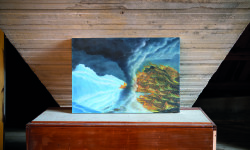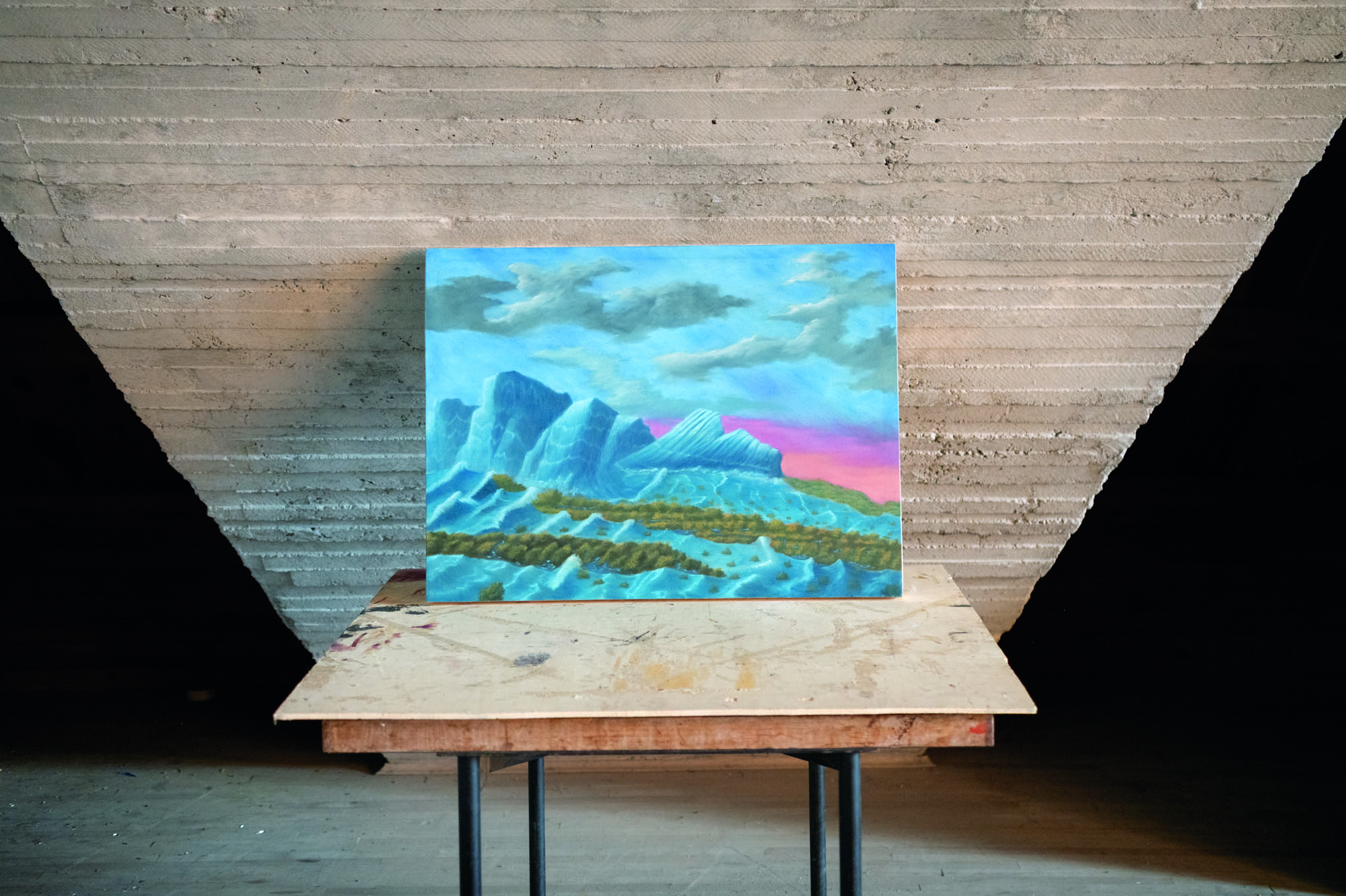 Il risultato di questo lavoro (due mesi di tempo e 7kg di peso) è un paesaggio ampio e fuori dal tempo, che poggia su di una struttura in cui tanti elementi figurativi e pittorici contrastanti convivono proporzionalmente all’interno dello stesso luogo.