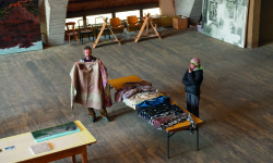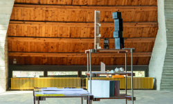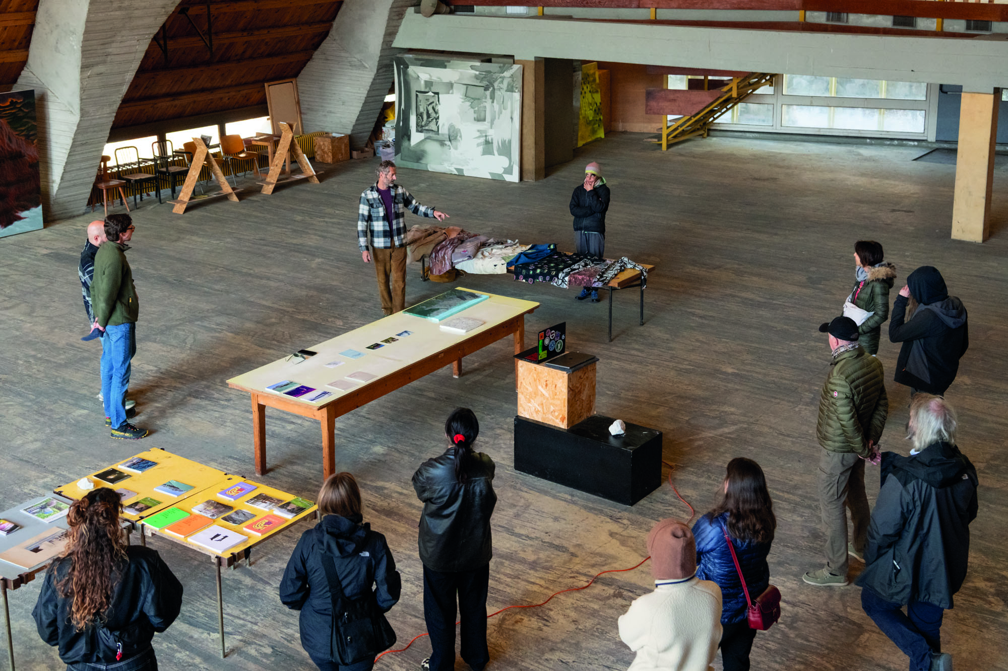 nel mentre, prima e dopo che gli architetti ablavano, gli artisti e alcuni fotografi venivano e allestivano e provavano; Anna Poletti riportava le sue produzioni straordinarie PBLAB e le indossavamo ancora, Nanni De Biasi ci contava del pigmento di Dolomia e Cencenighe davanti a un Antelao Carbolucente; Fabrizio De Bon accendeva “What Are You Looking For?” ai bagni dopo i bagni, suonando lamiere, metalli, ceramiche, e spandendo l’intenzione o la de-composizione dell’emozioni pei budelli mezzo ai suoni e lavelli; Giacomo Silva Gelataio Matteiano con sti test prova la Mano; Chiara Beretta da mesi diciotto intenta; tira fuori da questa faticosa e lunga sprimentazione nel “Laboratorio Luce Fresca” al Dormitorio MF, chimica e alchimia della luce trasferita, la sperimentazione dell’affresco (cenniniano) fotosensibile, con l’arriccio steso coi chimici sviluppati, attenzioni alla tossicità pericolosa della calce che reagisce con gli acidi, riequilibrazioni continue, la sabbia dell’arriccio vien dal Boite, le tavelle dalla Nuovaedil di Renato Perri, lode ai partner e ad Antonio Aiello e Idrotermolux sempre, alcuni sanpietrini, quelli piccili son test, stampata una croda della Falesia d’ErtoCasso; Fongarina dei supplì da lungo tempo qui, Casa Cametti anche, con Nicolò e Sara pergiunta; gran respiri vetrati e tessuti alle ex religiose, ultima accensione di “In the mood version 209” con Kristian Sturi alla Cappella, e disallestimento del gran lavoro decennale di Marta Allegri, con decine di studenti artisti passati e andati, e in quest’ultima fase con Elisa Cocchi, ma son saliti anche alcuni degli altri e li ritroveremo sempre tutti in ogni altrove e avanti; degli altri abbiamo detto nel finsettimana precedente; in mezzo a tutto ciò, che non era l’ostensione del corredo funebre ma l’ala di uno stormo in un frullo diffuso che sparge per l’aria, c’erano gli altri convenuti, ad ogni ora d’ogni giorno, in questo continuo spaziotemporale altronormale a salutare, a veder le Terrafomazioni di MastroPieri e le altre cose generate spiranti insospirate e avanti, poi ne viene una parte, quella che non avrai mai se non ci sei, e così dall’inizio della fluttuazione della città-bosco campione nello spazio alpino in puntuale puntuta dispiegata distensione, nel video nel resumè DC2025, e così via.