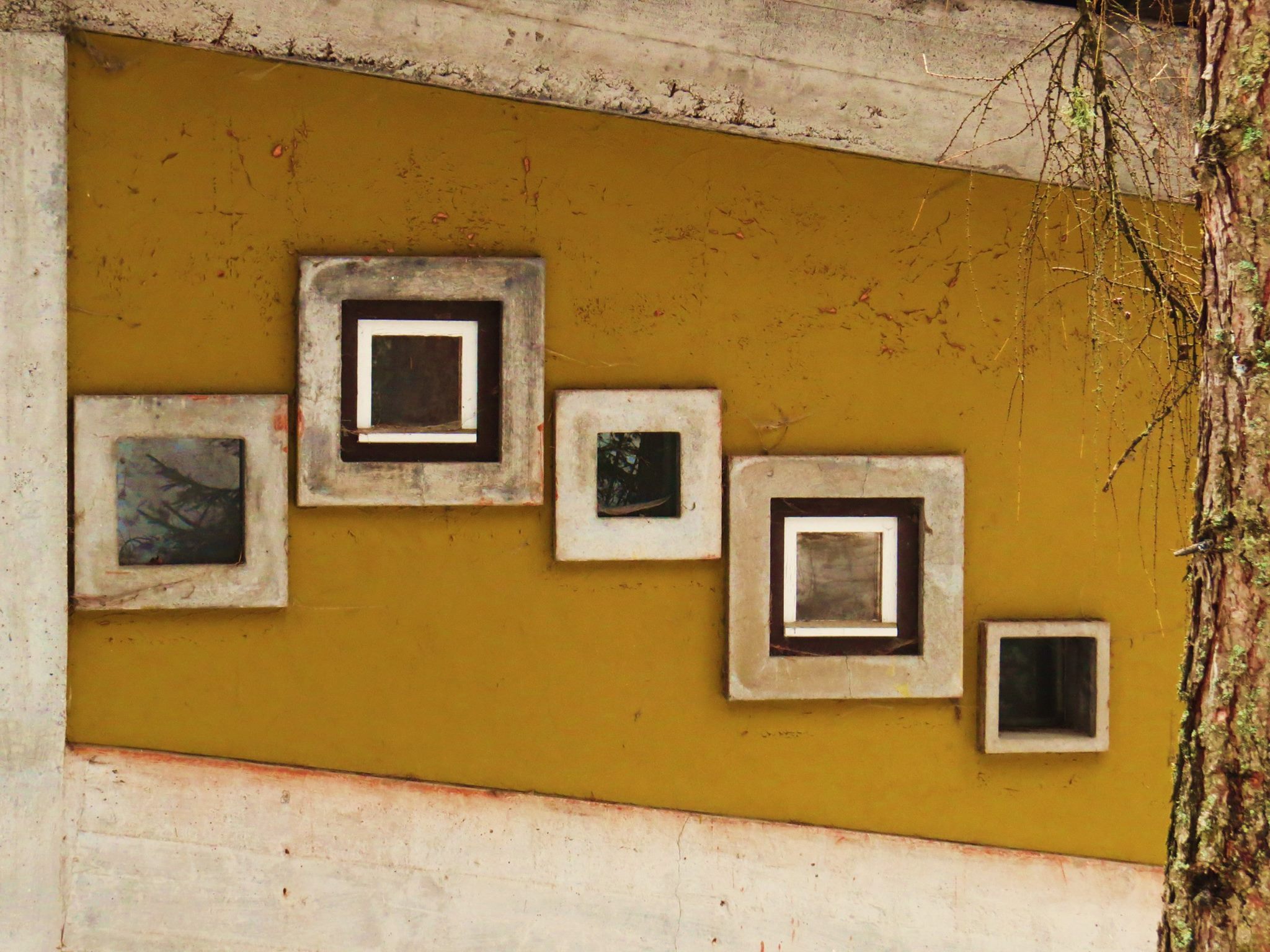 MGP: Si guardano le stesse cose ma le stesse si leggono con gli occhi della conoscenza e dell’esperienza. Quelle inquadrature rappresentano per me i giochi di prospettiva che facevo da bambina. Non capivo mai perché quelle finestrelle quadrate avessero una disposizione “casuale” , e non riuscivo mai ad individuare la finestrella vista dall’esterno con quella vista dall’interno. Ricordo che una volta chiesi ad una bimba di restare affacciata in una di esse, ed io uscii fuori per capire quale delle tante fosse….La foto del tetto sporgente con il mensolone invece mi ricorda le volte che cercavo di far coincidere gli spigoli…e come per magia mi resi conto dell’inganno della vista: quando sembrava coincidessero (lo spigolo del mensolone con quello del tetto) chiudevo l’occhio sinistro e la coincidenza conquistata svaniva: lo spigolo del mensolone si spostava a sinistra e viceversa quando chiudevo l’occhio destro. Anche in questa foto non sono riuscita a farli coincidere…. Ho apprezzato quell’architettura in maniera spontanea, in un’età dove non si giudica il bello ma si assimila in maniera naturale. Chissà che Gellner non avesse in mente di stimolare la curiosità dei bambini con quelle insolite costruzioni visto che erano loro i principali fruitori… ci ha donato anche dei colori abbinati. E tutti quei muri e pilastri di cemento color cemento mi davano l’impressione di qualcosa di incompiuto… ogni anno quando tornavo speravo avessero preso colore e invece rimanevano sempre color cemento. … sono davvero circondata da mille sensazioni quando mi trovo in quel luogo… è lì che risiedono i rudimenti della mia passione per la montagna in generale e per le Dolomiti in particolare…