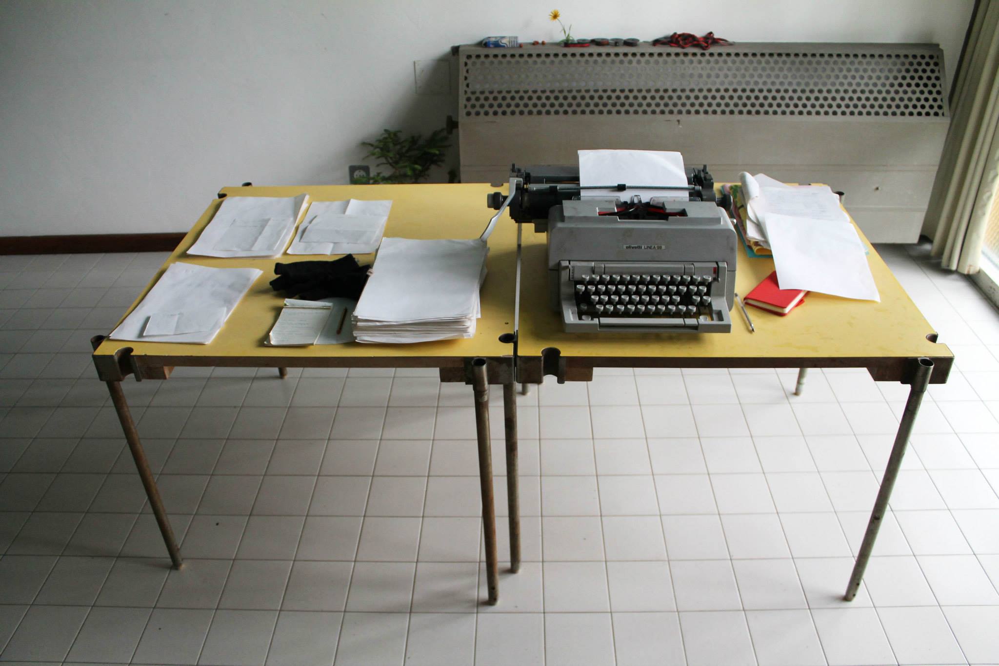 Il progetto Diari di Bordo 1960 – 2015 prevede il ripristino di una vecchia macchina da scrivere Olivetti del ’73. Ed è precisamente attraverso questa macchina che vengono ora scritti appunti, memorie e suggestioni colte nella Colonia, durante il primo periodo di residenza e nelle fasi successive del lavoro che verranno poi.